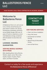 Ballesteros Fence LLC is a professional fence installation company based in Jackson, GA, serving residential, commercial, and agricultural clients throughout Middle Georgia. With over 20 years of hands-on experience, we specialize in chain link, vinyl (PVC), wood, ornamental steel fencing, farm fencing, commercial fencing, and custom gates—all installed with quality craftsmanship and dependable service.